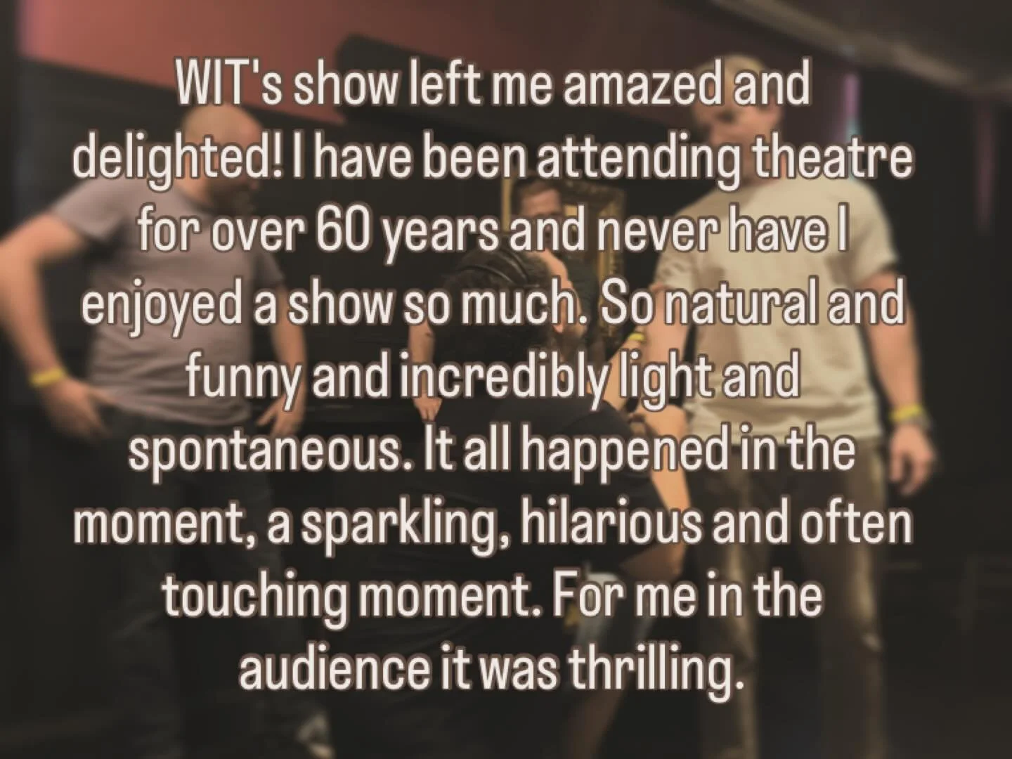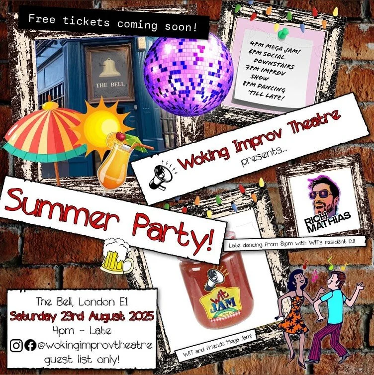 Every now and then WIT throws a party for our improvisers and for members of the wider Improv community. There isn't one in the pipeline just yet, but keep your eyes peeled for a WIT and Pals' Jam in August or the early Autumn. It's just £5 to play and £8 to watch. Anyone is welcome to play so long as you've done a couple of classes and read through and agreed to our Code of Conduct